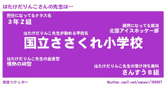 | 伝説のあだ名 | 『伝説のスナイパーはたけだりんこ』 |