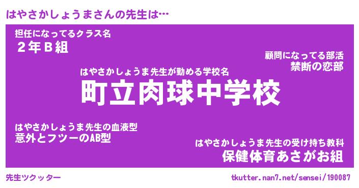 | 伝説のあだ名 | 『封印されし竜騎士はやさかしょうま』 |