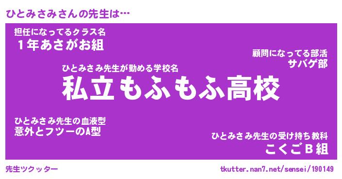 | ファンタジー風あだ名 | 『ヒトフェル』『エターナルヒトミサミー』 |