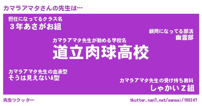 | 自動車の名前っぽいあだ名 | 『カマティマ』『カスラー』 |