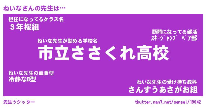 | ヘコむあだ名 | 『ねいもー』『酢こんぶ』『ねいっぺ』 |