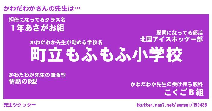 | ファンタジー風あだ名 | 『カワフェル』『エターナルカワダワカー』 |