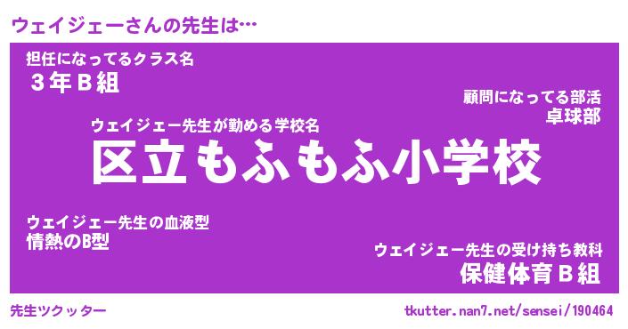 | 肩書あだ名 | 『ウェイジェー店長』『ウェイジェー先生』 |