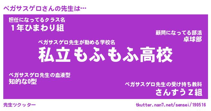 | 欧米人風あだ名 | 『マイケルペガサスゲロ』 |
