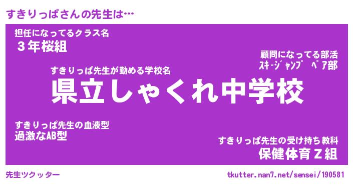 | 伝説のあだ名 | 『不死鳥のスナイパーすきりっぱ』 |