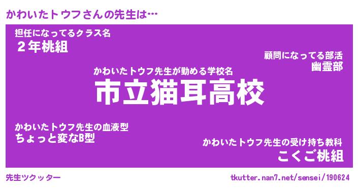 | ヒーロー風カッコイイあだ名 | 『スーパーカワイタトウフ』 |