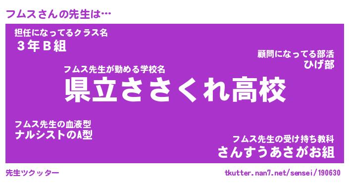 | 意味不明あだ名 | 『ペロリンフムス』『フムスフォーエバー』 |