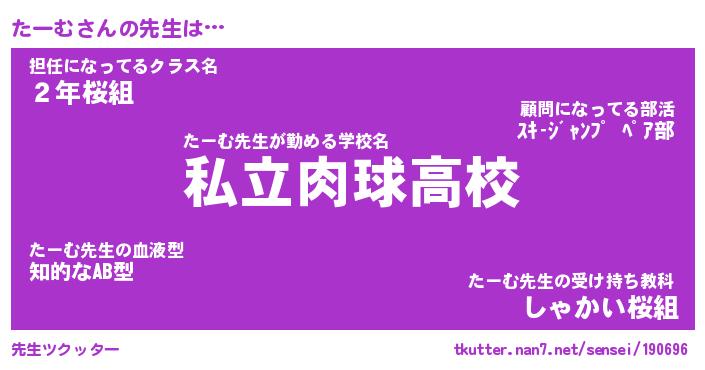 | ヘコむあだ名 | 『たーふぇ~』『豆乳』『たーっちょ』 |