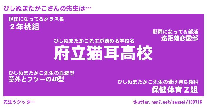 | ツイッター | ひしぬまたかこさんのツイッターID『namakemono_man』 |