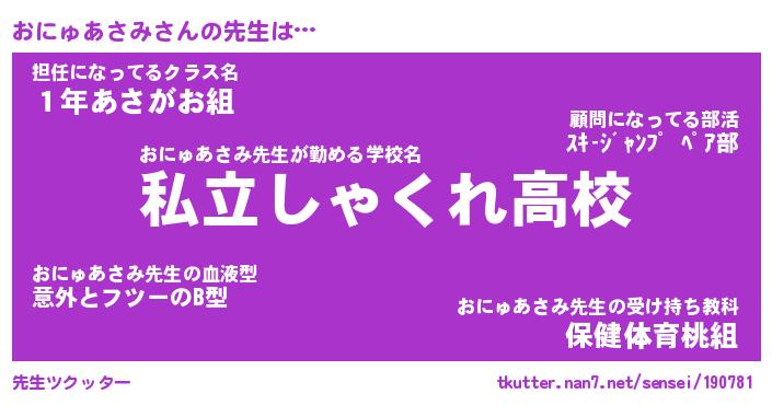 | 伝説のあだ名 | 『伝説のスナイパーおにゅあさみ』 |