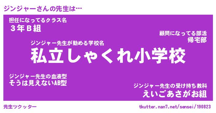 | 肩書あだ名 | 『ジンジャー御曹司』『ジンジャー塾長』 |