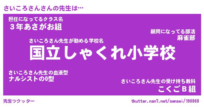 | 伝説のあだ名 | 『伝説のスナイパーさいころさん』 |