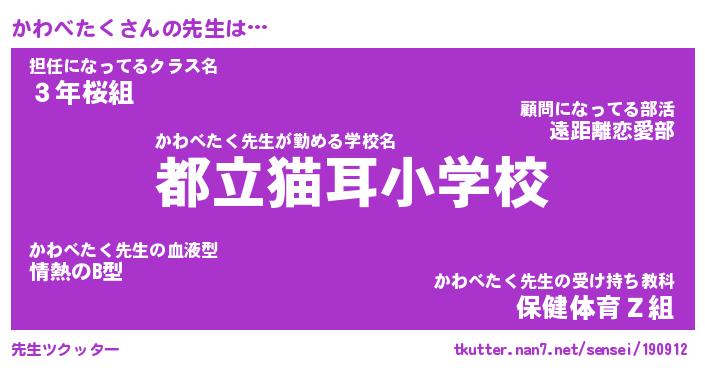 | ヒーロー風カッコイイあだ名 | 『スーパーカワベタク』『幻影騎士カワ』 |