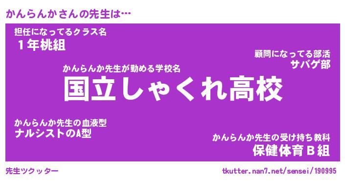 | 伝説のあだ名 | 『伝説のスナイパーかんらんか』 |