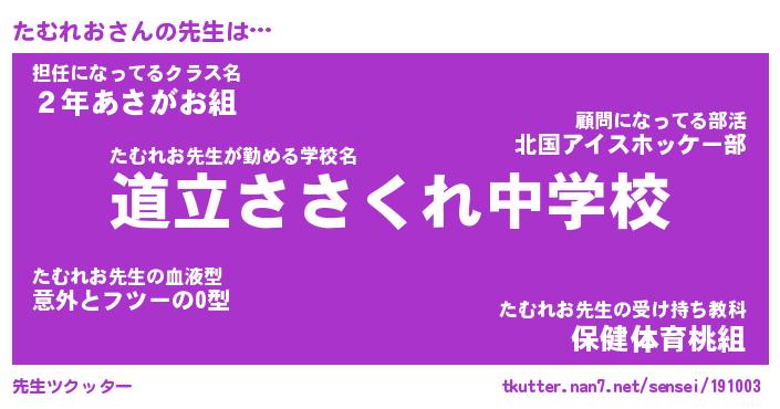 | 意味不明あだ名 | 『ペロリンたむれお』『永久保存たむれお』 |