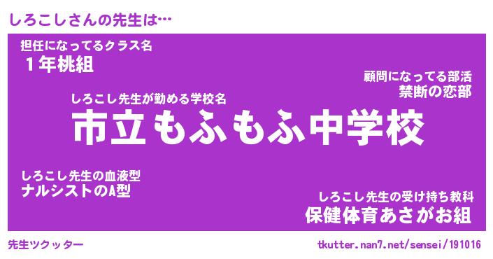 | 意味不明あだ名 | 『ペロリンしろこし』『永久保存しろこし』 |