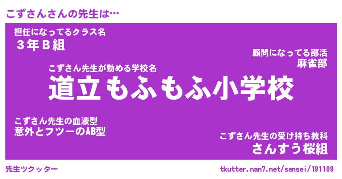 | 意味不明あだ名 | 『ペロリンこずさん』『永久保存こずさん』 |