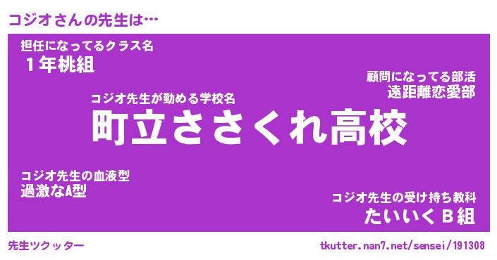 | ファンタジー風あだ名 | 『コジフェル』『エターナルコジオー』 |