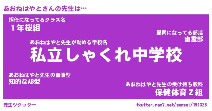 | ヒーロー風カッコイイあだ名 | 『スーパーアオネハヤト』『炎刃騎士アオ』 |
