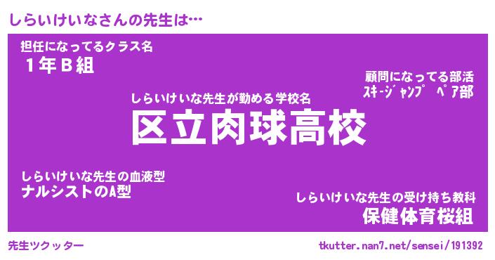 | ヘコむあだ名 | 『しらふぇ~』『つくし』 |