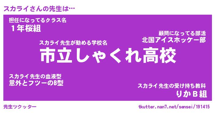 | ヒーロー風カッコイイあだ名 | 『スーパースカライ』『暗黒騎士スカ』 |