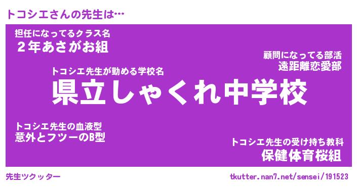| 意味不明あだ名 | 『ペロリントコシエ』『永久保存トコシエ』 |