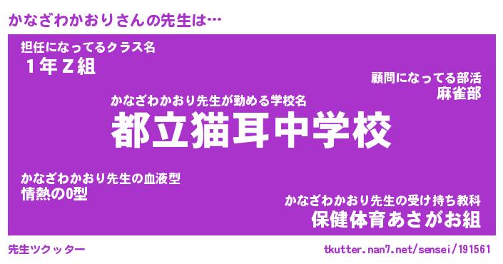 | 意味不明あだ名 | 『ペロリンかなざわかおり』 |