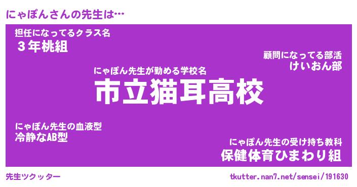 | 意味不明あだ名 | 『ペロリンにゃぽん』『永久保存にゃぽん』 |