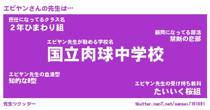 | ファンタジー風あだ名 | 『エビフェル』『エターナルエビヤンー』 |