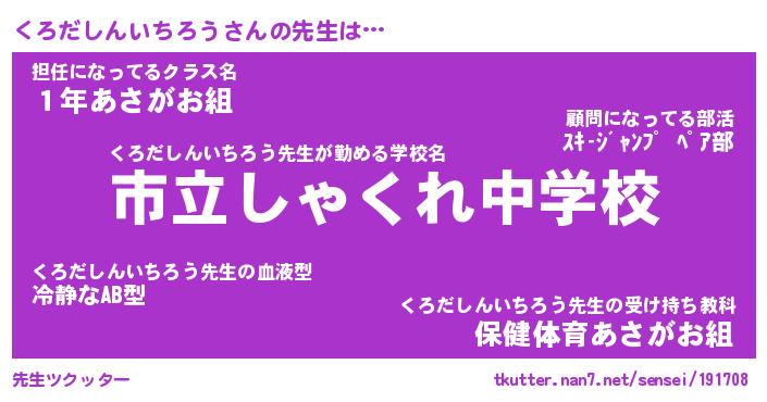 | 伝説のあだ名 | 『伝説のスナイパーくろだしんいちろう』 |