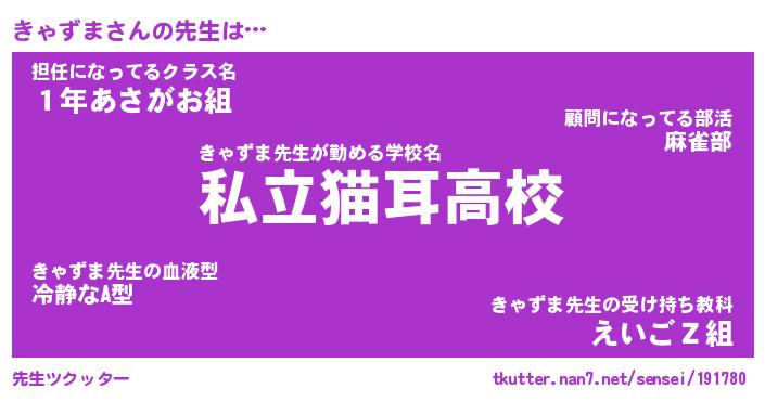 | 意味不明あだ名 | 『ペロリンきゃずま』『永久保存きゃずま』 |