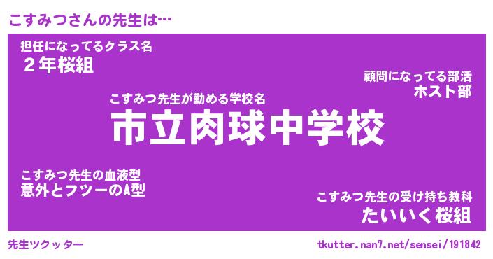 | 意味不明あだ名 | 『ペロリンこすみつ』『永久保存こすみつ』 |