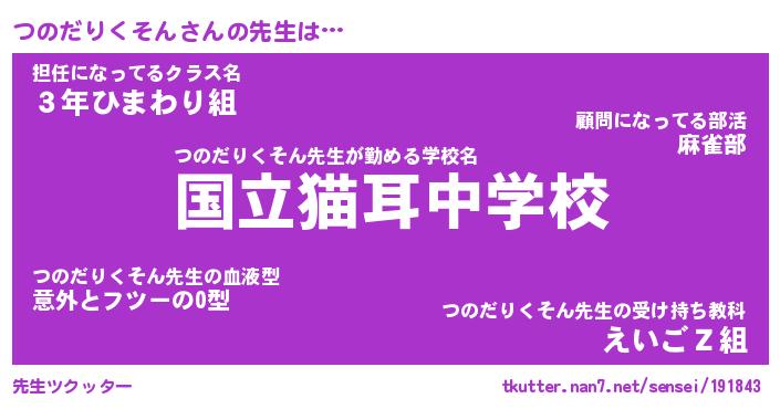 | ヘコむあだ名 | 『つのにー』『酢こんぶ』『つの太郎』 |
