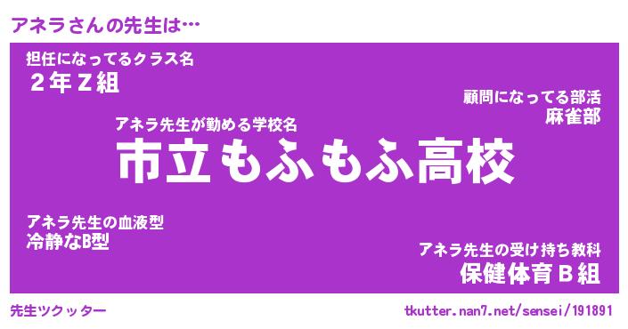 | ヒーロー風カッコイイあだ名 | 『スーパーアネラ』『ウルトラアネラマン』 |