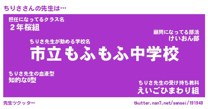 | ファンタジー風あだ名 | 『チリフェル』『エターナルチリサー』 |