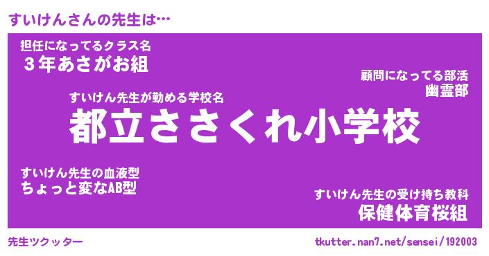 | 意味不明あだ名 | 『ペロリンすいけん』『永久保存すいけん』 |
