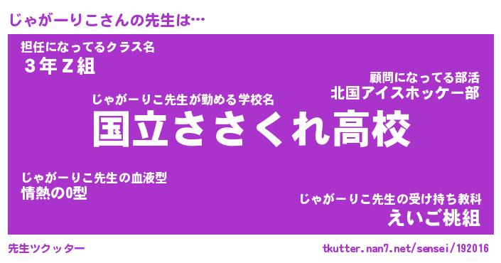 | ポケモン風あだ名 | 『ジャチュウ』『ジャガダネ』 |