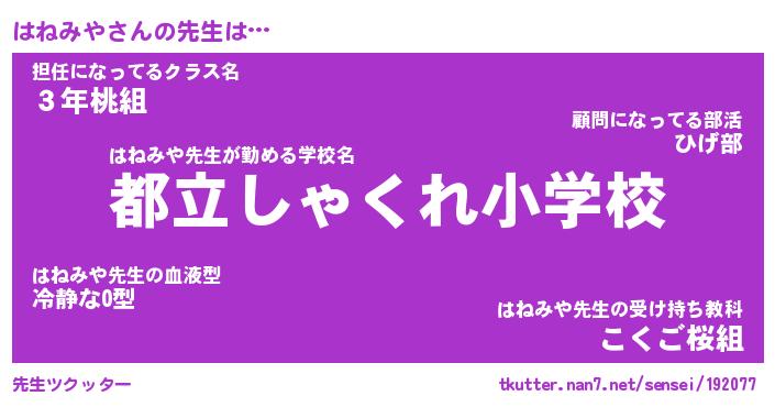 | 意味不明あだ名 | 『ペロリンはねみや』『永久保存はねみや』 |