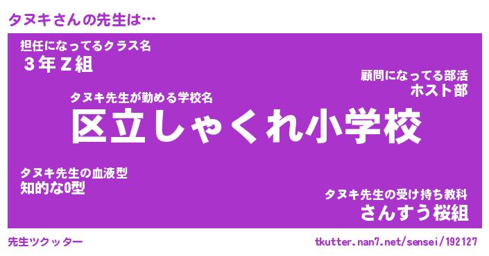 | ファンタジー風あだ名 | 『タヌフェル』『エターナルタヌキー』 |
