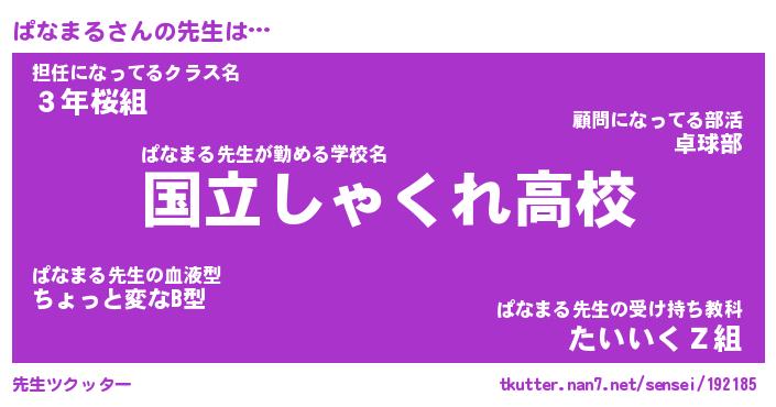 | 意味不明あだ名 | 『ペロリンぱなまる』『永久保存ぱなまる』 |