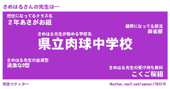| 意味不明あだ名 | 『ペロリンさめはる』『永久保存さめはる』 |
