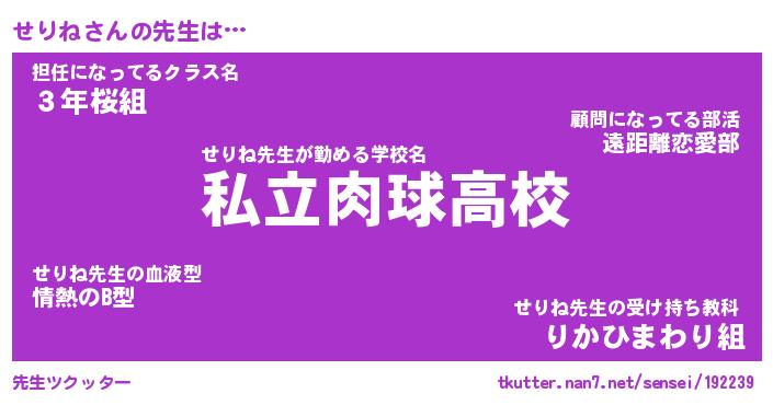 | 意味不明あだ名 | 『ペロリンせりね』『せりねフォーエバー』 |