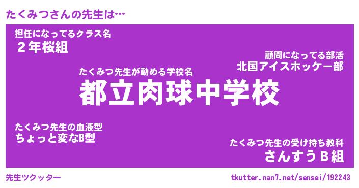 | ヘコむあだ名 | 『たくふぇ~』『つくし』『たくお』 |