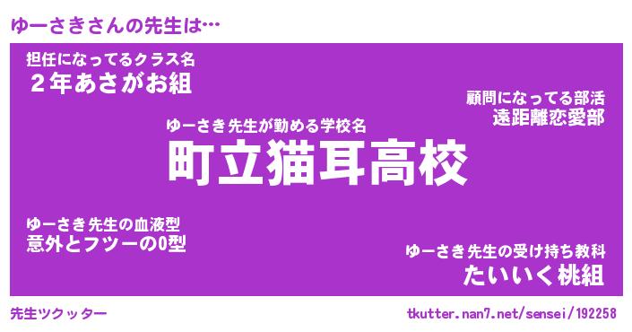 | ファンタジー風あだ名 | 『ユーフェル』『エターナルユーサキー』 |