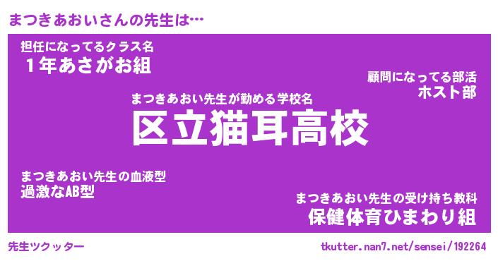| 肩書あだ名 | 『まつきあおい社長』『まつきあおい班長』 |