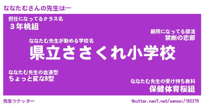 | ポケモン風あだ名 | 『ナナチュウ』『ナナタダネ』 |