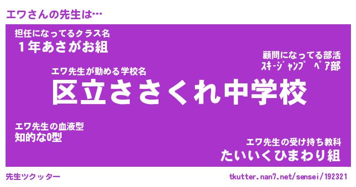 | ヒーロー風カッコイイあだ名 | 『スーパーエワ』『ウルトラエワマン』 |