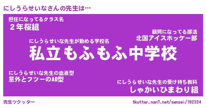 | 恥ずかしいあだ名 | 『プリティーにしうらせいな』『にしちん』 |