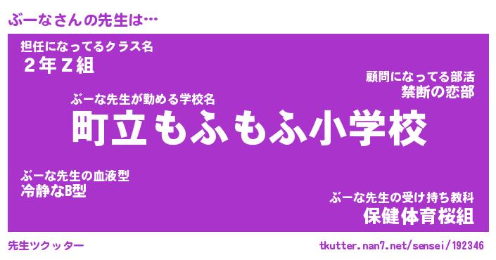 | ファンタジー風あだ名 | 『ブーフェル』『エターナルブーナー』 |