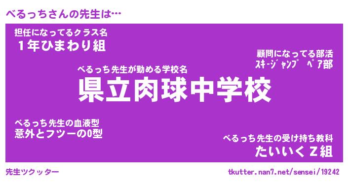 | 意味不明あだ名 | 『ペロリンべるっち』『永久保存べるっち』 |